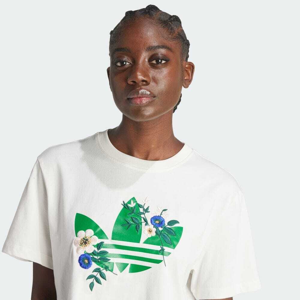 (アディダスオリジナルス) adidas Originals ファッション グラフィック フローラル トレフォイル クロップ半袖Tシャツ Tシャツ レディース KMB66 IS3870 WOMEN FASHION GRAPHIC FLORAL TREFOIL CROP T-SHIRT BLACK