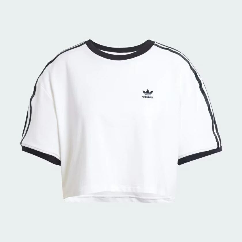 (アディダスオリジナルス) adidas originals アディカラー スリーストライプス ルーズ クロップド半袖Tシャツ ストリート レディース KRV79 JC8150 WOMEN ADICOLOR THREE STRIPES LOOSE CROPPED SHORT SLEEVE T-SHIRT WHITE